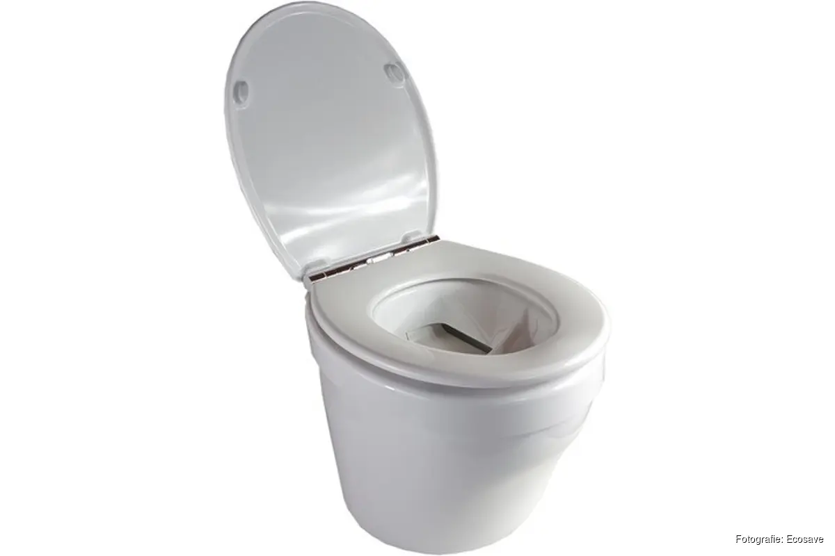 Een Ecosave droogtoilet, kunt je in diverse soorten krijgen, groot en klein, afhankelijk van de ruimte. Het gebruikt géén water, géén chemicaliën en scheidt urine van de ontlasting. Urine kan samen met het wastafelwater in de grijze vuilwatertank (die overal geleegd mag worden), Terwijl de ontlasting en het papier droog opgevangen worden in het toilet.