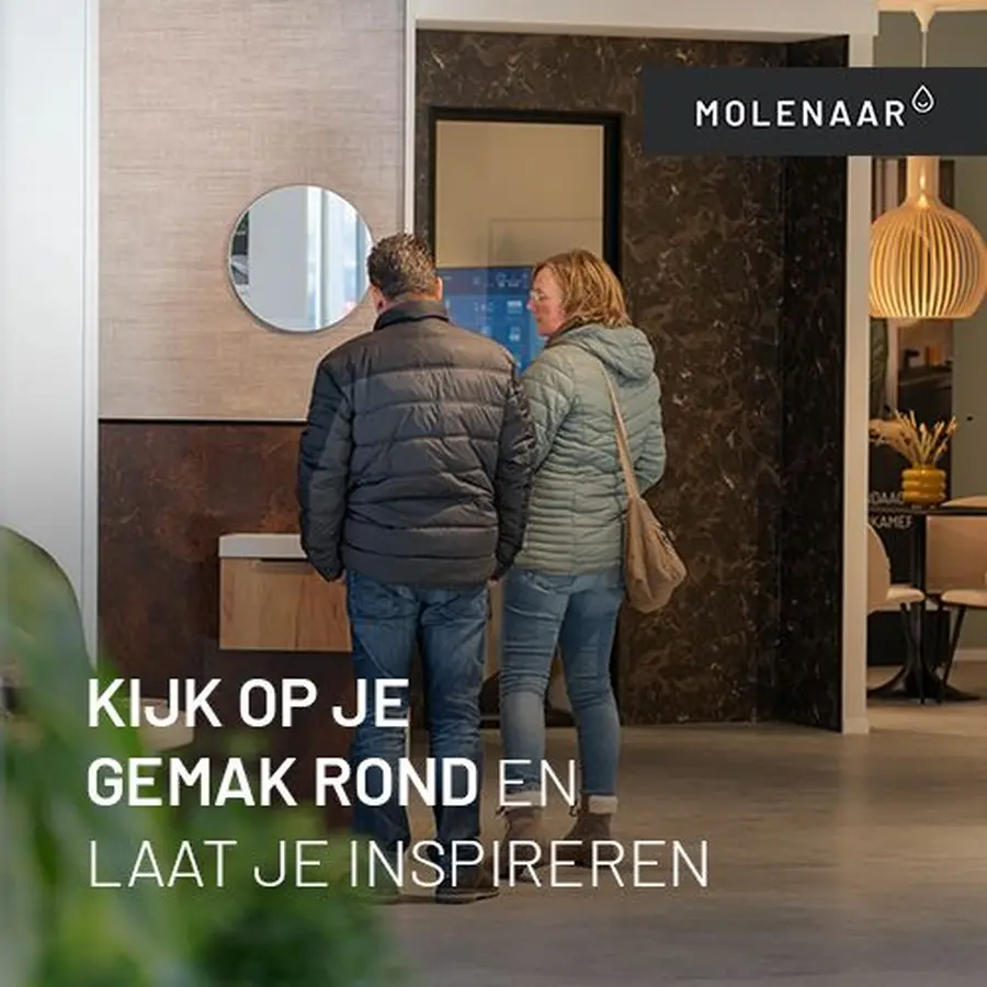 Kom naar de showroom in Nunspeet en ervaar de Molenaar collectie in het echt! In onze showroom vind je meerdere badkameropstellingen. We laten je graag kennismaken met onze materialen, kleuren, stijlen en onze innovatieve producten.